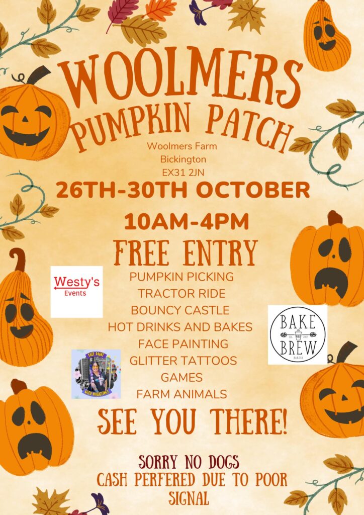Braunton Pumpkin Patch: Open from Friday 25th – Thursday 31st, 10am–4pm. Free entry, dogs welcome on leads.