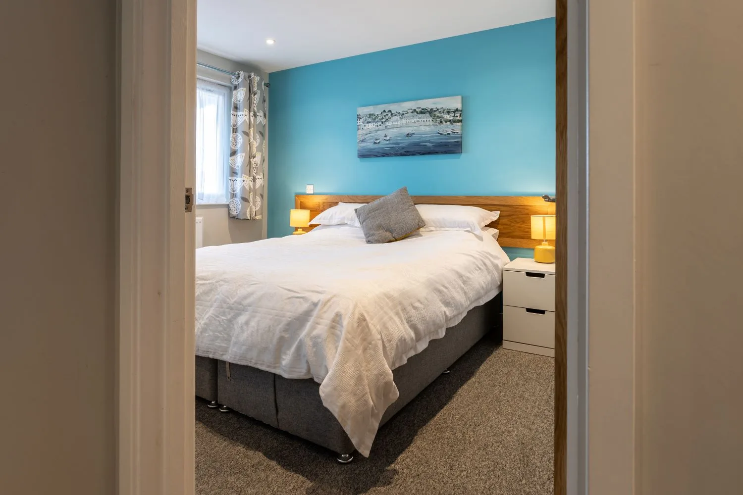 This reverse level house has been designed to make the most of the beautiful sea views. Two of the bedrooms are on the ground floor and consist of a light and spacious king-size bedroom (with a zip-and-link bed that can be made into twin beds on request.) with a Smart TV and a twin bedroom with Smart TV. The downstairs bedrooms are served by a family bathroom which has a bath with thermostatic shower over. There is a handy utility room with washing machine/ tumble dryer and access to a small patio area.