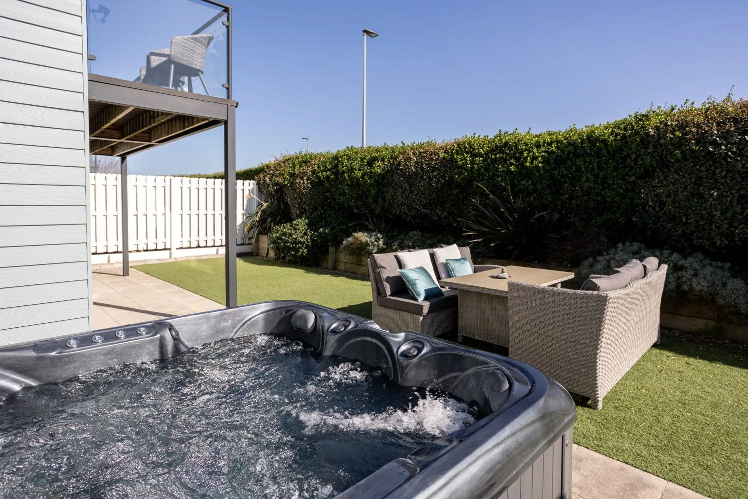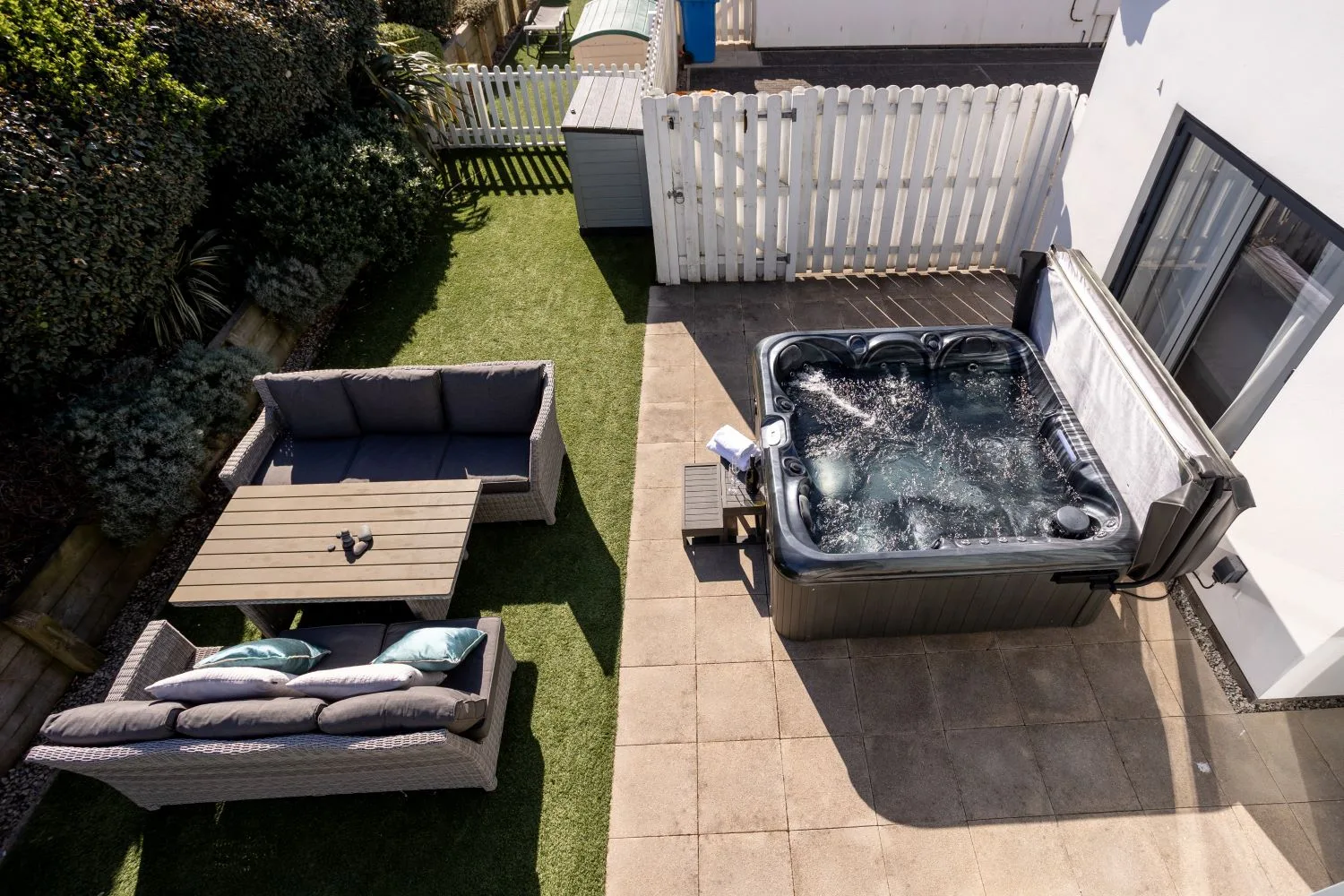 Garden: An enclosed patio area is at the rear of property and is furnished with a table and chairs, BBQ and is the perfect spot to unwind in the evening. You also have the added benefit of a hot tub in the enclosed rear garden.