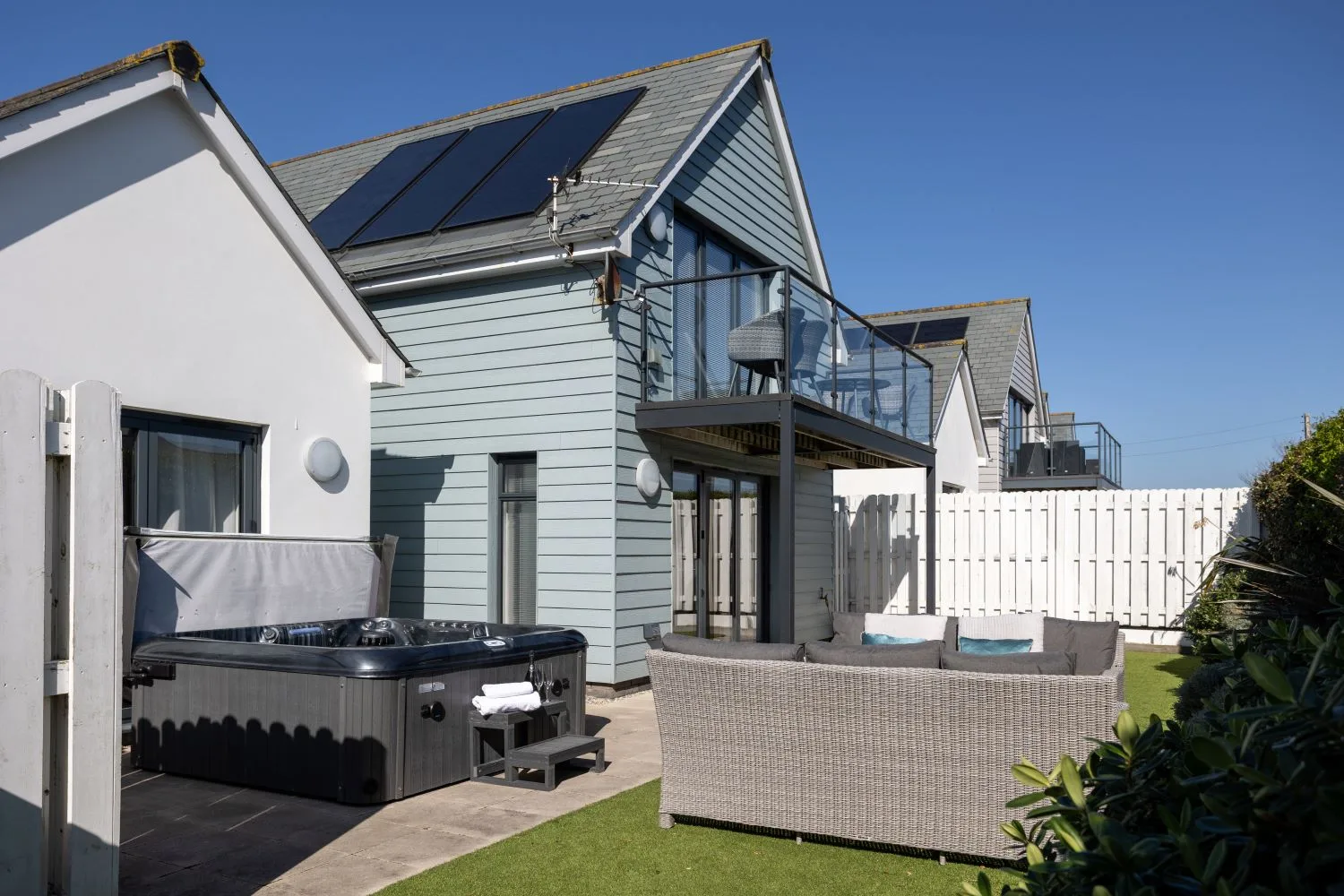Facilities and Services: Linen and towels provided (excluding beach towels). Underfloor heating throughout. Wi-Fi Broadband. Sky Television. Xbox One games console. No smoking. 2 Pets welcome. Garden and balcony furniture. BBQ. Hot tub. Private parking for 2 cars. Short breaks available. 4pm arrival time. Arrival/departure for weekly bookings is Friday.