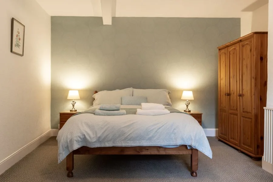 The property itself has two bedrooms and a roomy living space. On the ground floor there is a entrance hall leading on to the country cottage style kitchen. The kitchen table sits in front original stone fireplace and provides the perfect setting for meals together. There is a good size living room, with comfortable sofas and a wood burning stove, so you can sit back and relax in the glow of the fire during those cooler evenings. On the first floor there are two bedrooms, both furnished with solid wood furniture, and a family bathroom. The property benefits from a small, south facing patio area and sloped lawned garden to the side and the rear. Due to it’s location the farm is a haven for wildlife. So, sit back with a coffee in hand and enjoy the serenity of nature all around you – who knows what you may see?