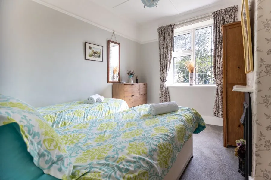Bedroom 2 (Ground Floor): Twin Bedroom with wardrobe, chest of drawers and bedside.