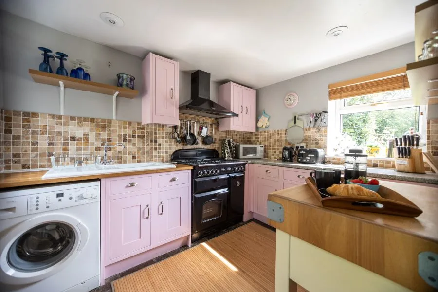 Kitchen: Well equipped, ‘county style’ fitted kitchen with gas range cooker, 4 ring gas hob, microwave, toaster, electric kettle, fridge & freezer, washing machine and variety of kitchen utensils.