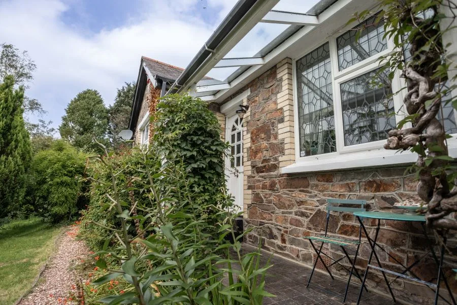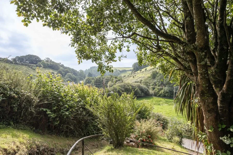There are approx. 39 shallow steps from the parking area, but the view and secluded nature of the property are well worth it. A small front veranda welcomes you with amazing views of the valley. The front of the property offers a delightful garden and valley view too. There is a wood burner for cooler evenings in the lounge and a large double bedroom also overlooks the front of the property and boasts wonderful garden and valley views. At the rear of the property a twin bedroom and a well-equipped kitchen, both offering views of the garden. The cottage’s outdoor space is truly enchanting, featuring a patio with seating, terraced lawns, and mature borders, all accompanied by lovely valley views.