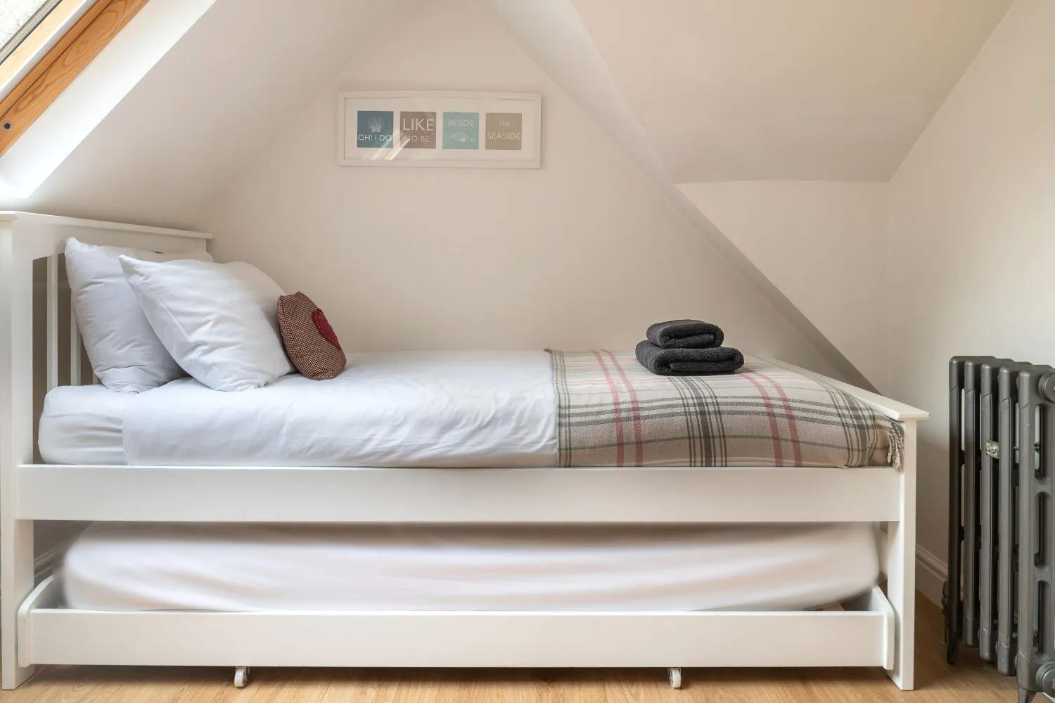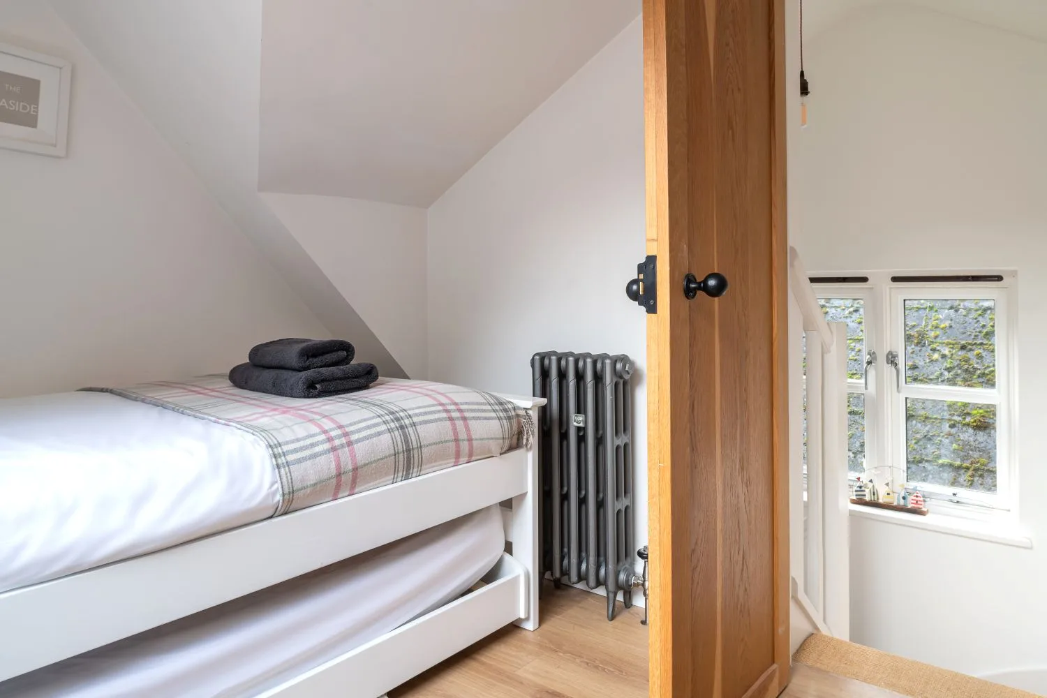 Bedroom 3 (Second Floor): A cosy single bedroom on the second floor, accessed via steep stairs. With sloping, reduced height ceilings, offers a peaceful little hideaway.