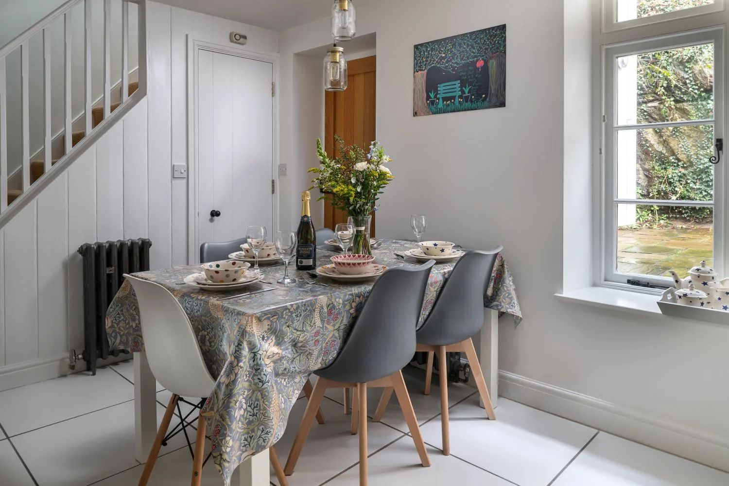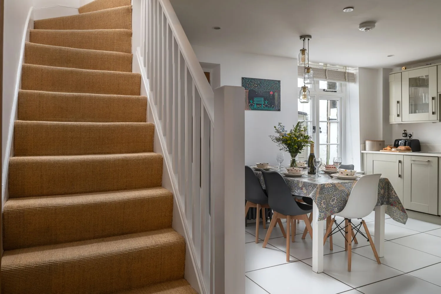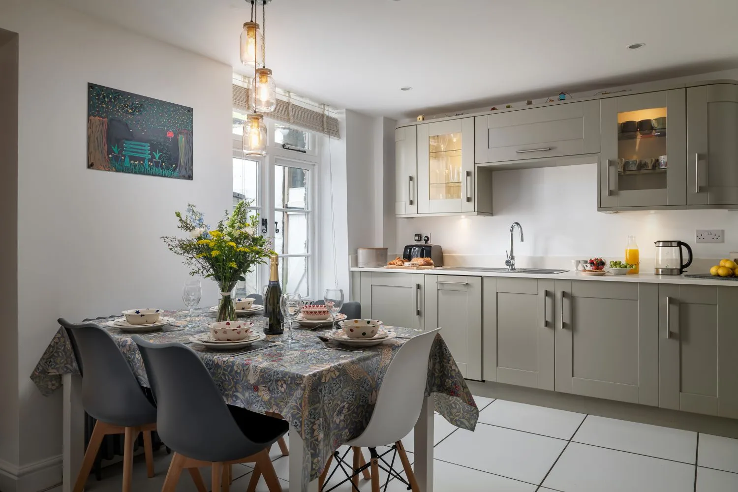 The kitchen provides everything needed for preparing meals, along with a dining table seating five. Ideal for relaxed breakfasts, family meals or evenings in.