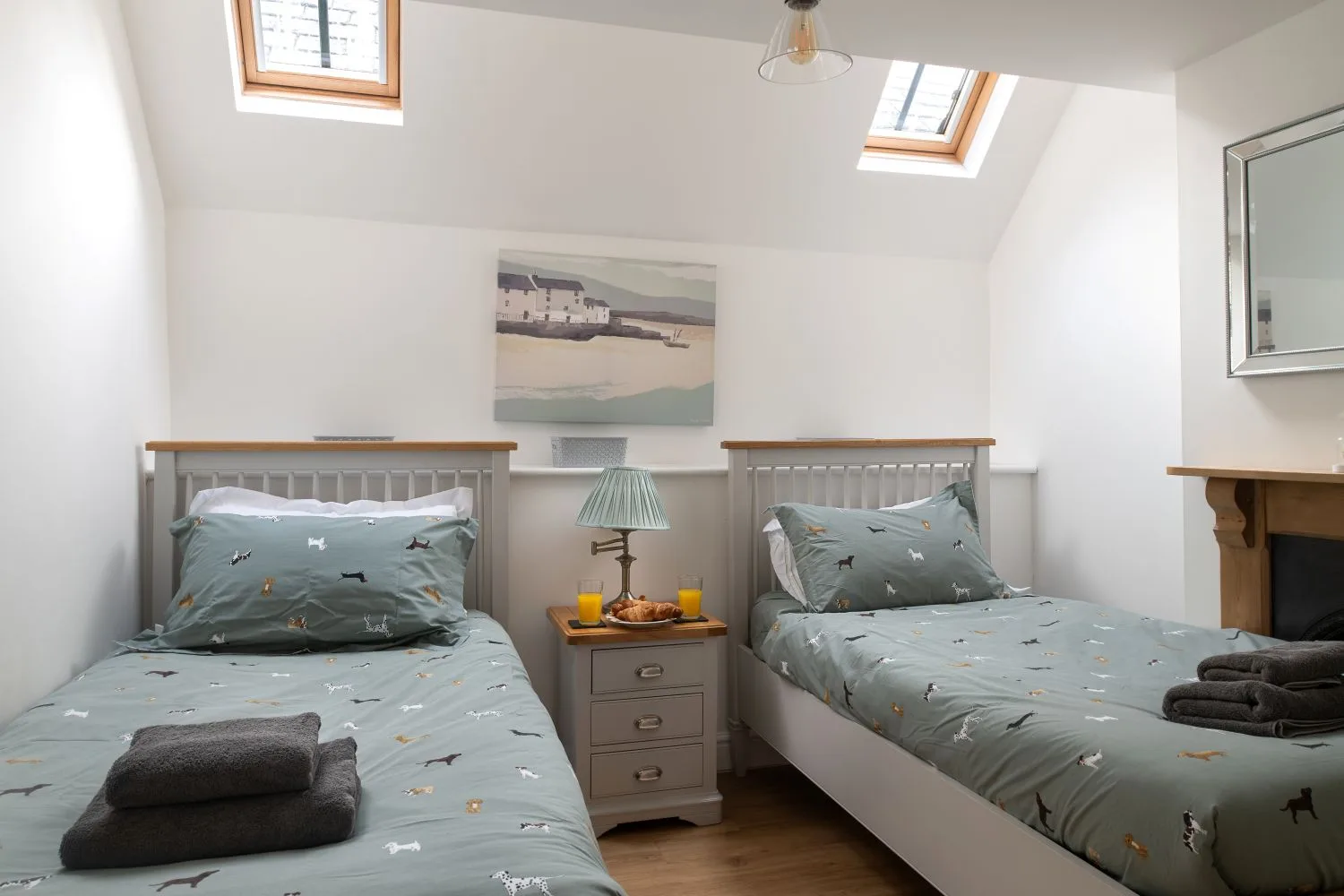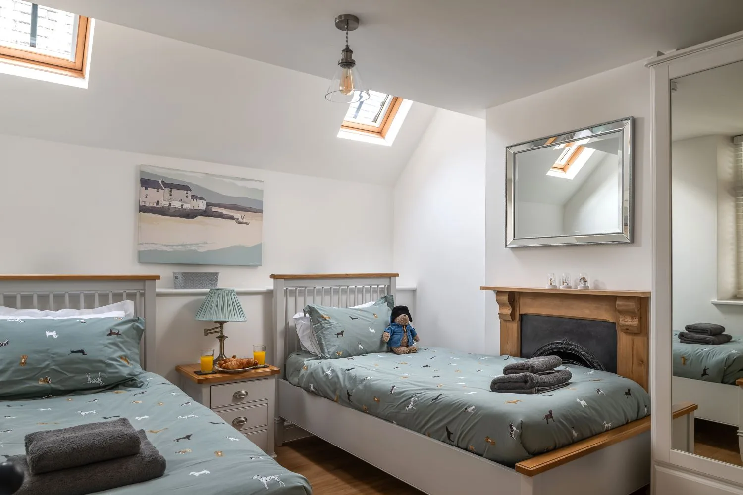 Bedroom 2 (First Floor): Twin Bedroom with wardrobe, bedside and TV.