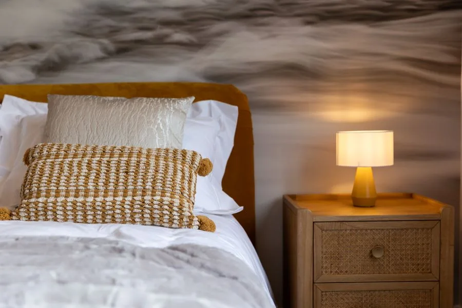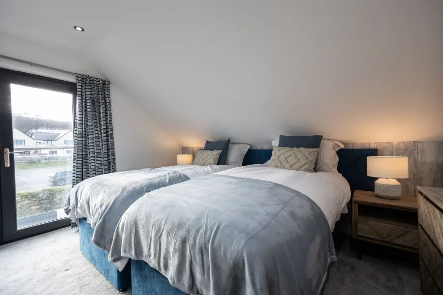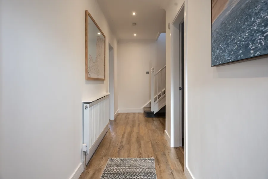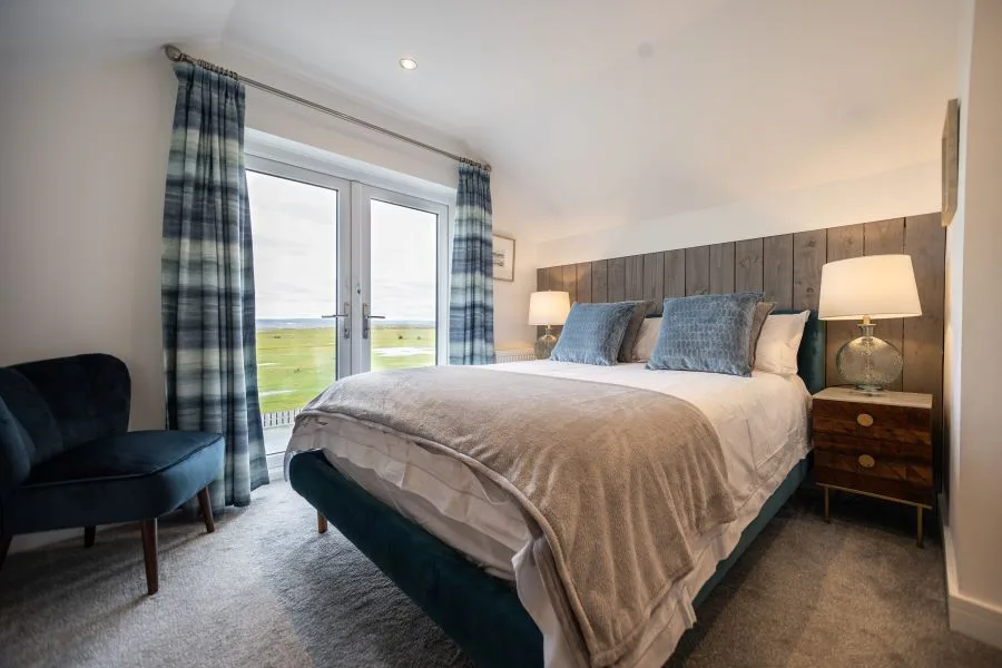 This airy and spacious property boasts 3 bedrooms, accommodating up to 6 guests. Upon entering, the hallway guides you to a king-size bedroom elegantly furnished with a wardrobe, chest of drawers, bedside tables, and an ensuite shower room. The ground floor bedroom and bathroom make this property ideal for multi-generational families. The bright, open-plan living room and kitchen serve as the home’s centrepiece, offering ample comfortable seating, a breakfast bar, a large Smart TV, and a wood-burning stove. The modern, well-equipped kitchen features a fridge/freezer, double electric ovens, an induction hob, a wine cooler, a dishwasher, and a microwave – perfect for preparing meals to savour while soaking in the breathtaking coastal scenery. For larger family meals, the dining room accommodates 6 guests comfortably.