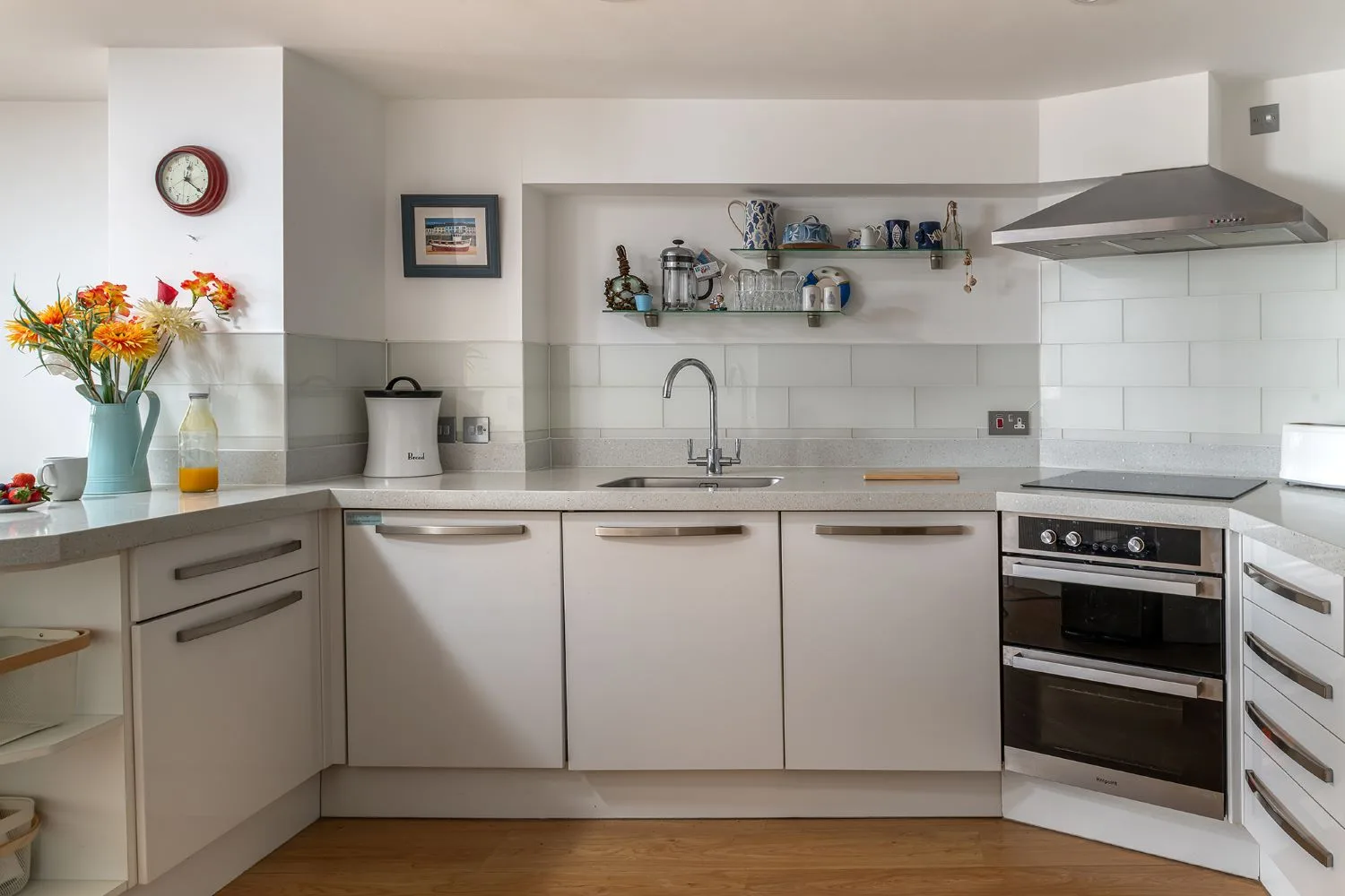 Kitchen: Well equipped fitted kitchen with electric oven, 4 ring induction hob, integrated microwave, toaster, electric kettle, integrated dishwasher, integrated fridge & freezer, washing machine and a variety of kitchen utensils.