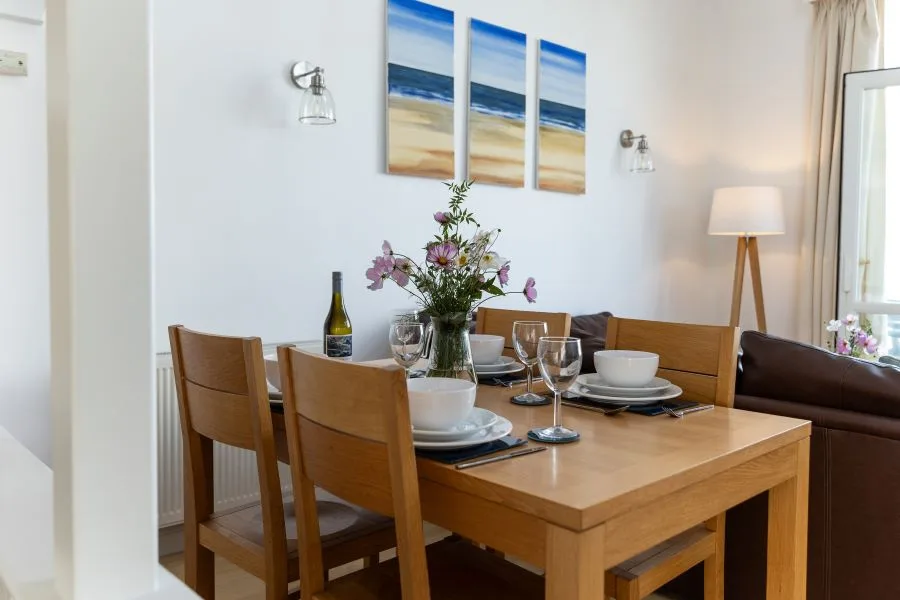 Dining area: A dining table with 4 chairs provides a lovely setting to enjoy an evening meal.