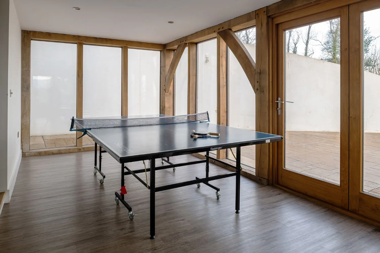 Garden Room: Table tennis table, dining table and chairs. Access to the patio area.