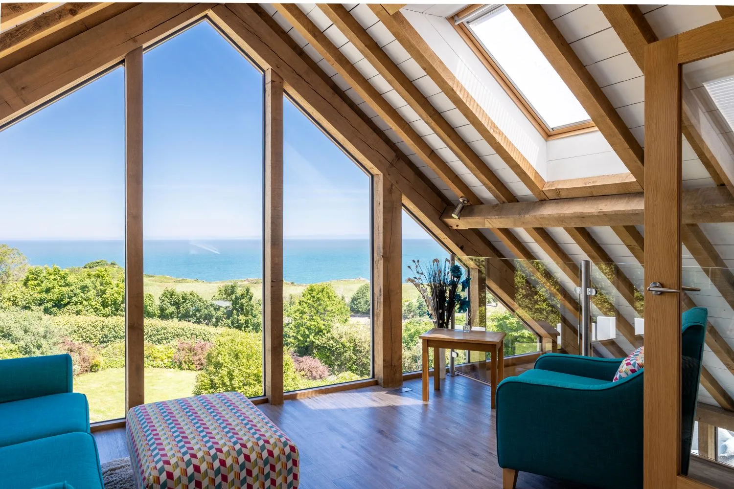Viewing Gallery: Oak timber viewing gallery with ample soft seating and fantastic sea and countryside views. Accessed by both Bedroom 3 and 4 and provides access to balcony.